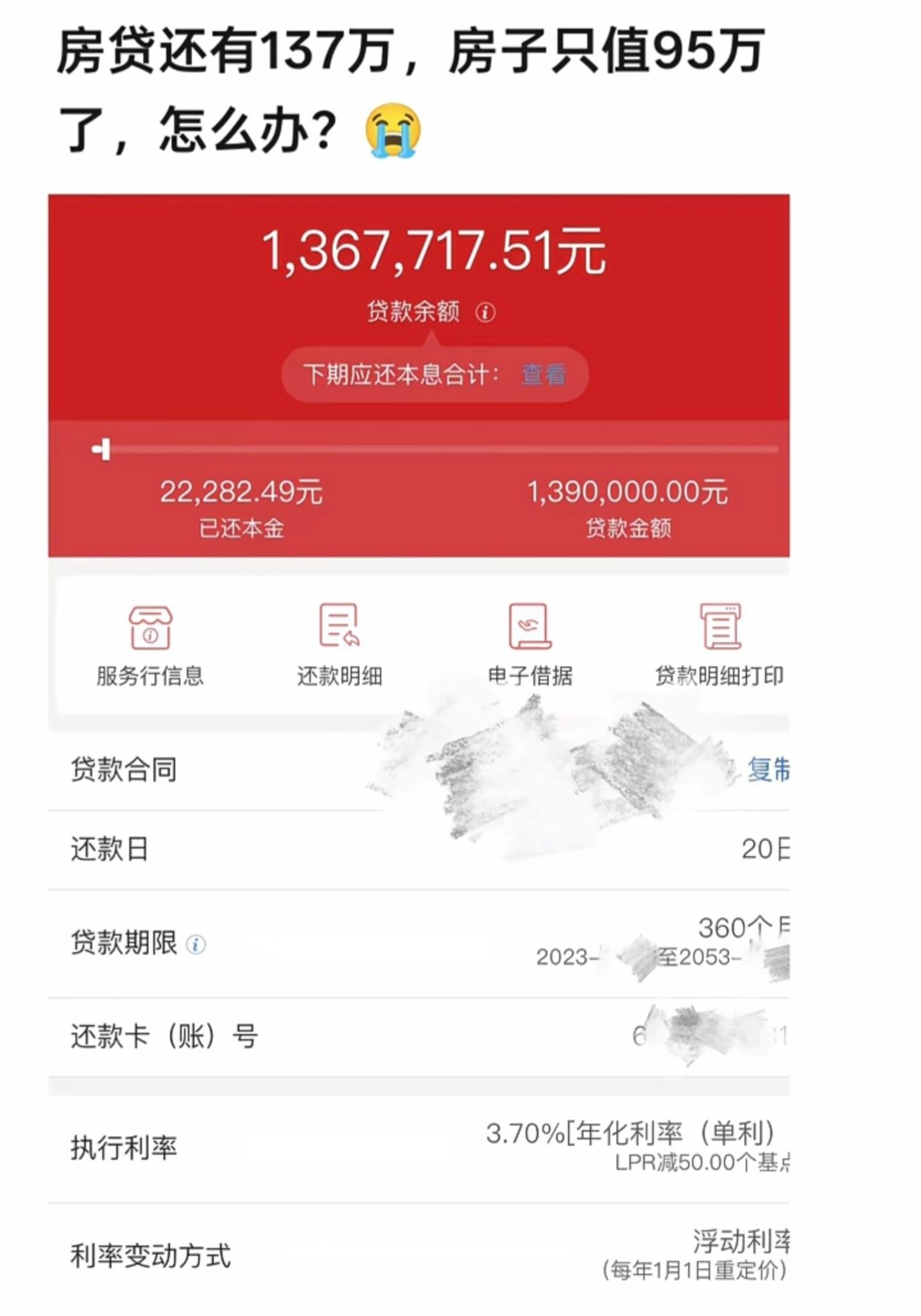 {"content":"哎 还要还27年 我该怎么办啊","contentType":"application/json;utf-8","attachments":["metafile://a655e3cd5b149f4a9173010e3a9a9d257
